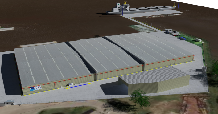 The work will be implemented within the grounds of the ONTUR Terminal in Nueva Palmira, on its Eastern limit as shown in the following image, all necessary government permits have been obtained for its execution.